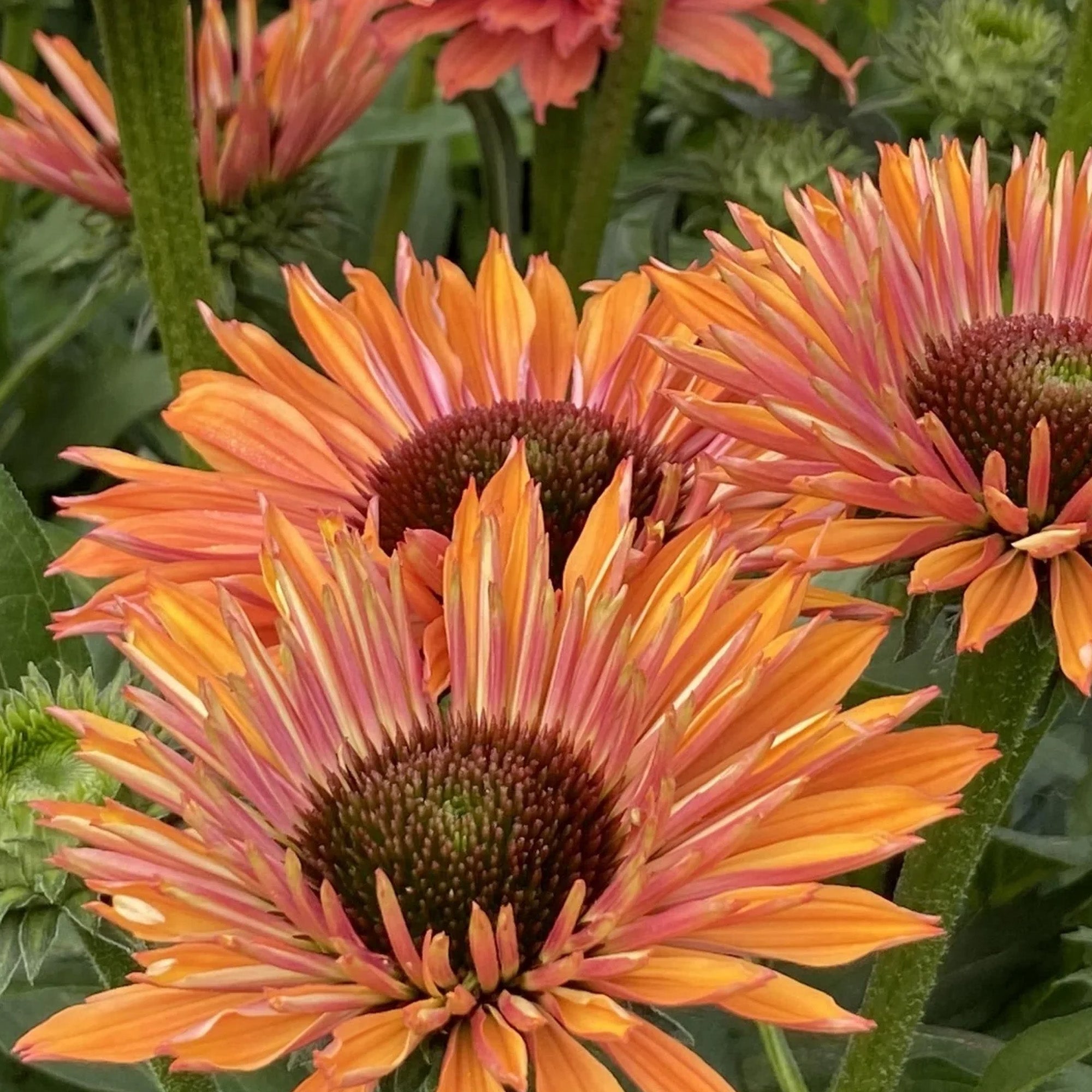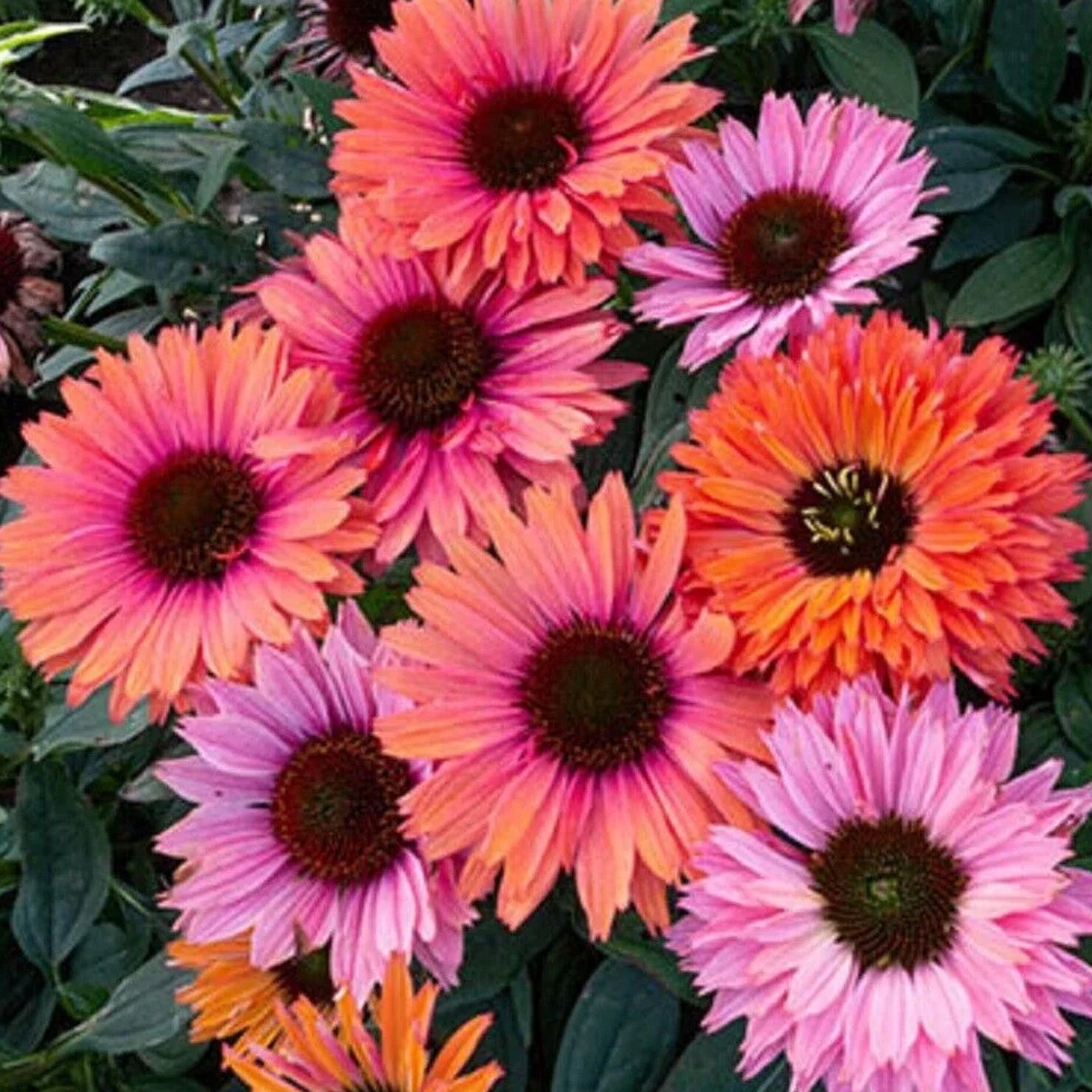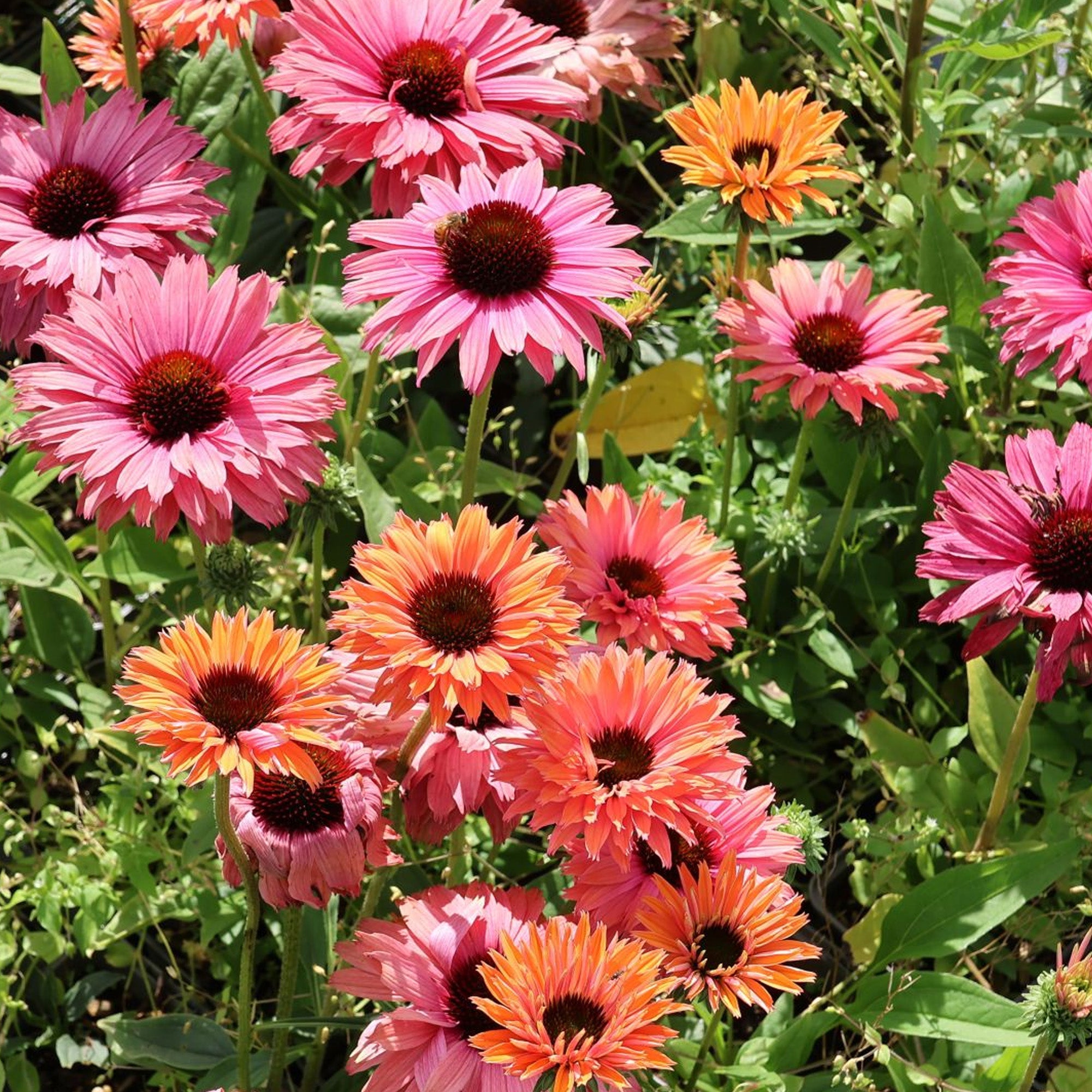 Echinacea SunSeekers Rainbow ist eine winterharte Staude, die jedes Gartenbild hervorragend bereichert. Mit ihren bezaubernden rosa Blüten, die während der gesamten Blütezeit üppig gedeihen, verleiht diese Sorte Außenbereichen eine lebendige und vitale Atmosphäre.