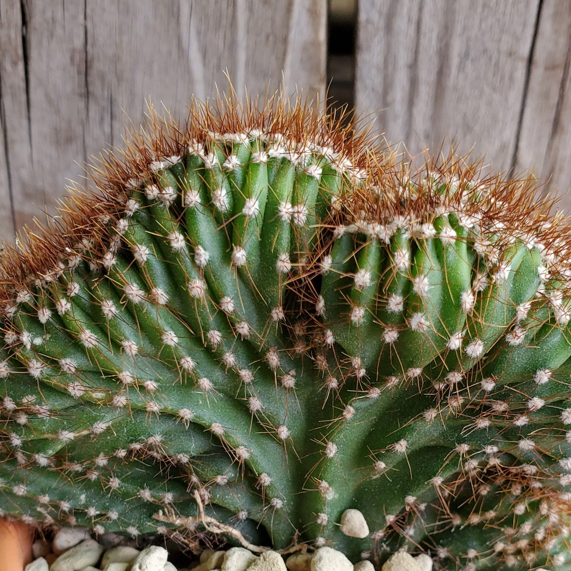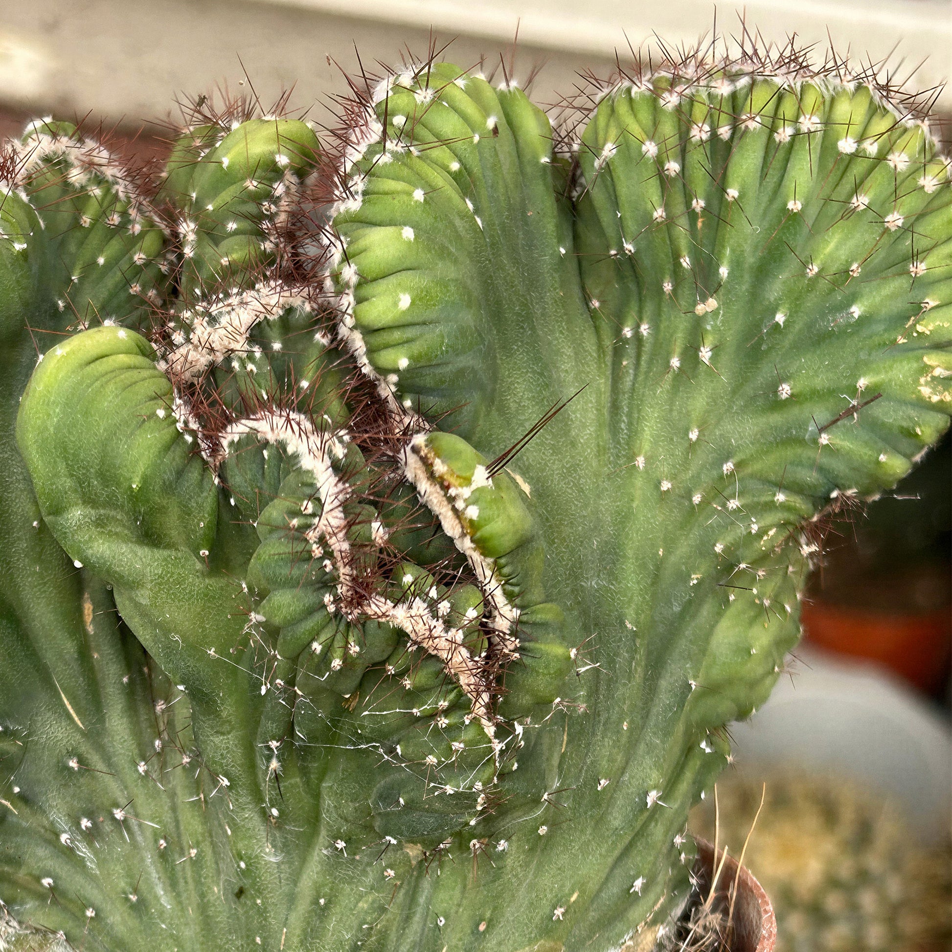 To protect the delicate crest, it is best to position this plant in bright, indirect light or full sun, ensuring it is acclimatised slowly to prevent scorching. Watering requires precision; you must water the soil directly and avoid pouring water into the folds of the crest, as trapped moisture can quickly lead to rot. Use a gritty, free-draining cactus compost and allow the soil to dry out completely between waterings.