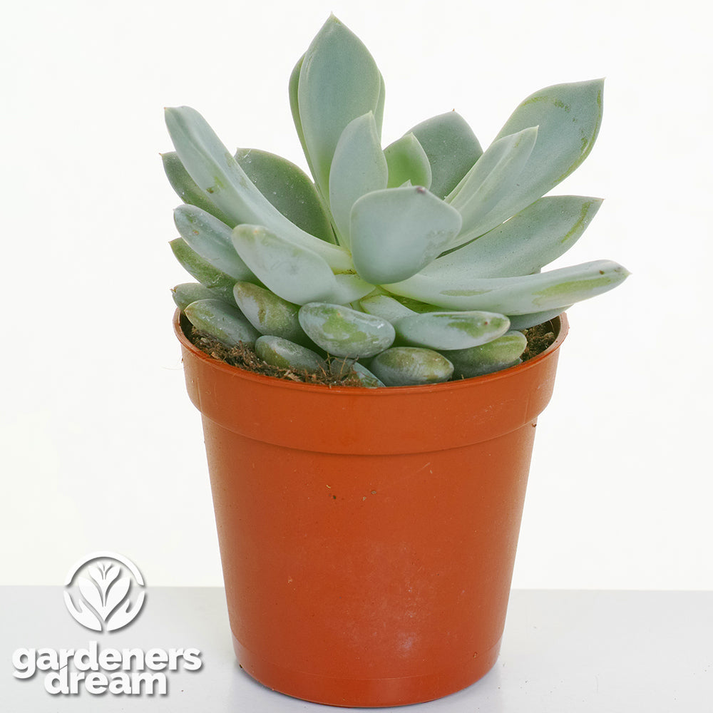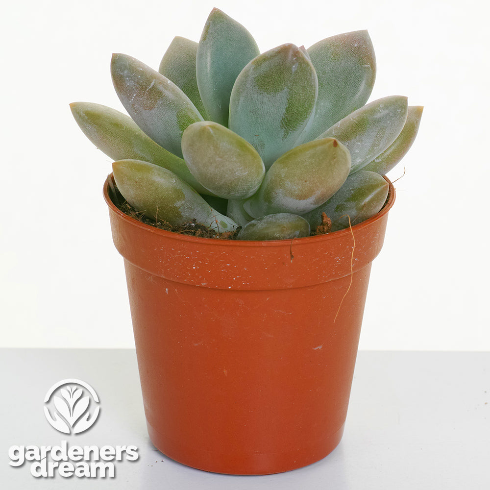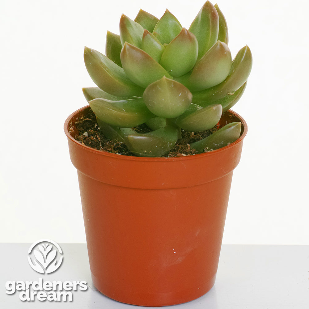 Water your Echeveria sparingly, allowing the soil to dry out completely between waterings. Use a watering can or bottle to target the base of the plant, avoiding water pooling in the rosette, which can lead to rot. During the active growing season (spring and summer), water thoroughly every 2–3 weeks. Reduce watering to once a month during winter when growth slows, ensuring the plant remains dry to prevent overwatering issues.