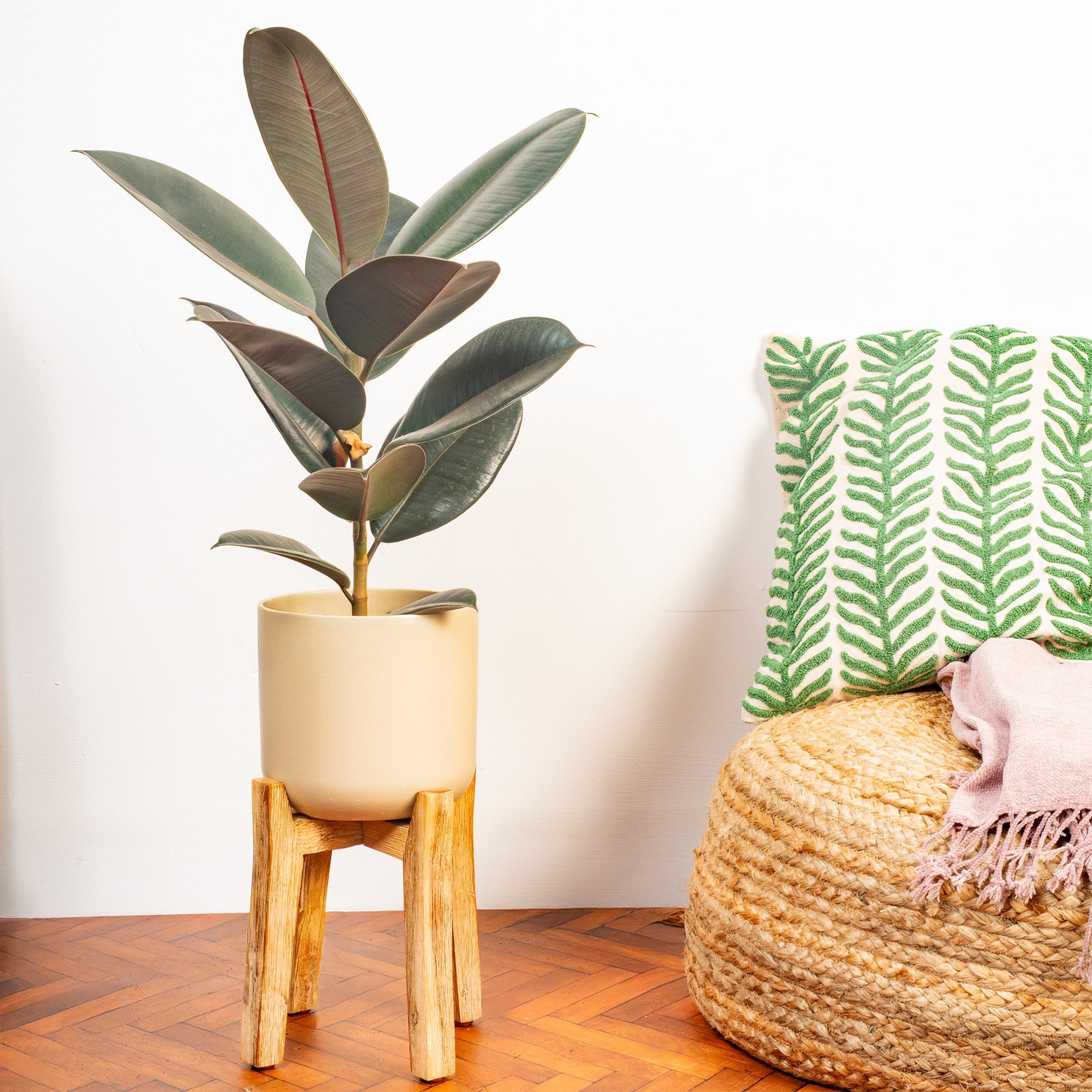 Ficus Abidjan is an indoor plant with clean and flawless dark shaded leaves. The leaves are the main visual aspect of the plant and they don't fail to disappoint. The Abidjan will offer itself as an air-purifying plant, meaning all the air surrounding the plant will have any harmful pollutants removed and replaced with fresh, clean air. The Rubber Plant, as it is more commonly known, will grow to an ultimate height and spread of 2.5-4m and 1-1.5m and has a very minimal care process - only water the Abidjan when the top soil is dry to touch, you should mist the plant to ensure the glossiness of the leaves continues and you should avoid sitting the plant in water at any time.