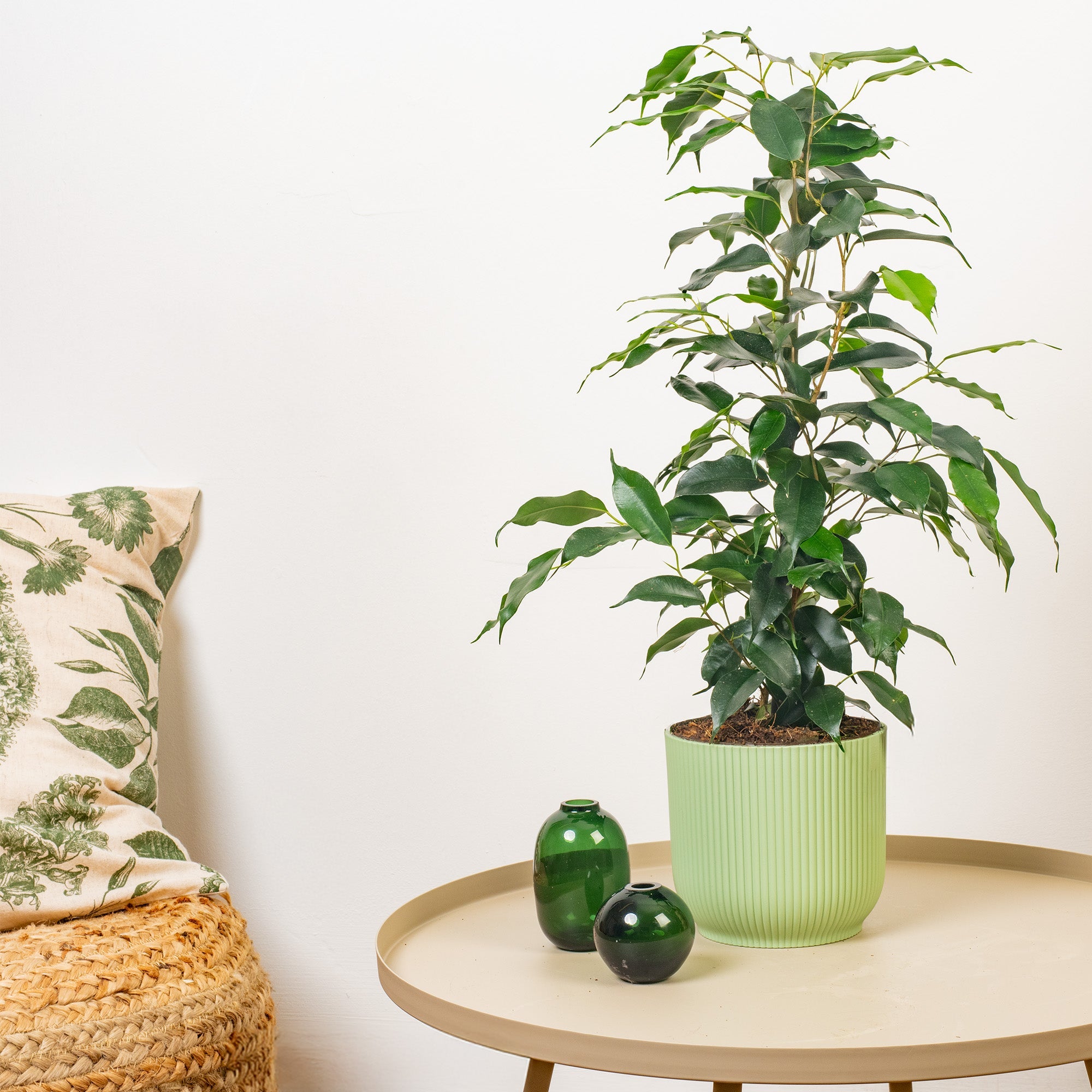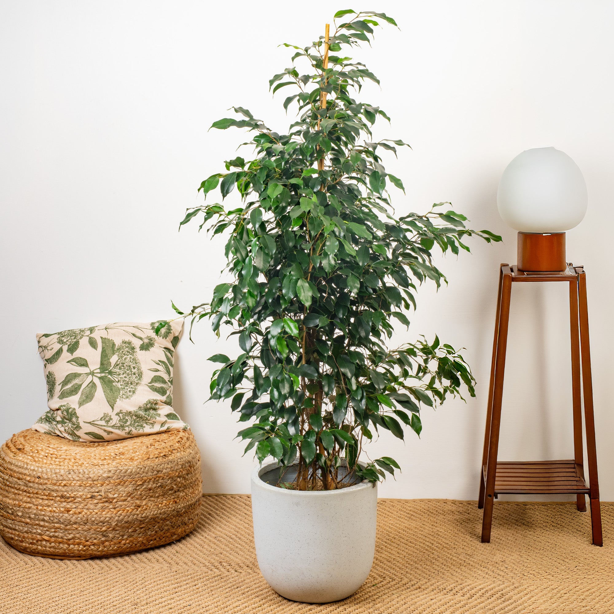 Bring a touch of nature to your home with our Ficus Benjamina Danielle plant. This versatile and stylish indoor plant will bring life and greenery to any room with its lush green leaves and unique, curved branches. This hardy plant thrives in bright, indirect light and moderate to high humidity, making it an ideal choice for a sunny room in your home. With its ability to purify the air and improve indoor air quality, the Ficus Benjamina Danielle is not only beautiful but also beneficial for your health. This plant is easy to care for, requiring occasional watering and pruning to maintain its shape. So, add this stunning piece of greenery to your home today and enjoy the natural beauty it brings
