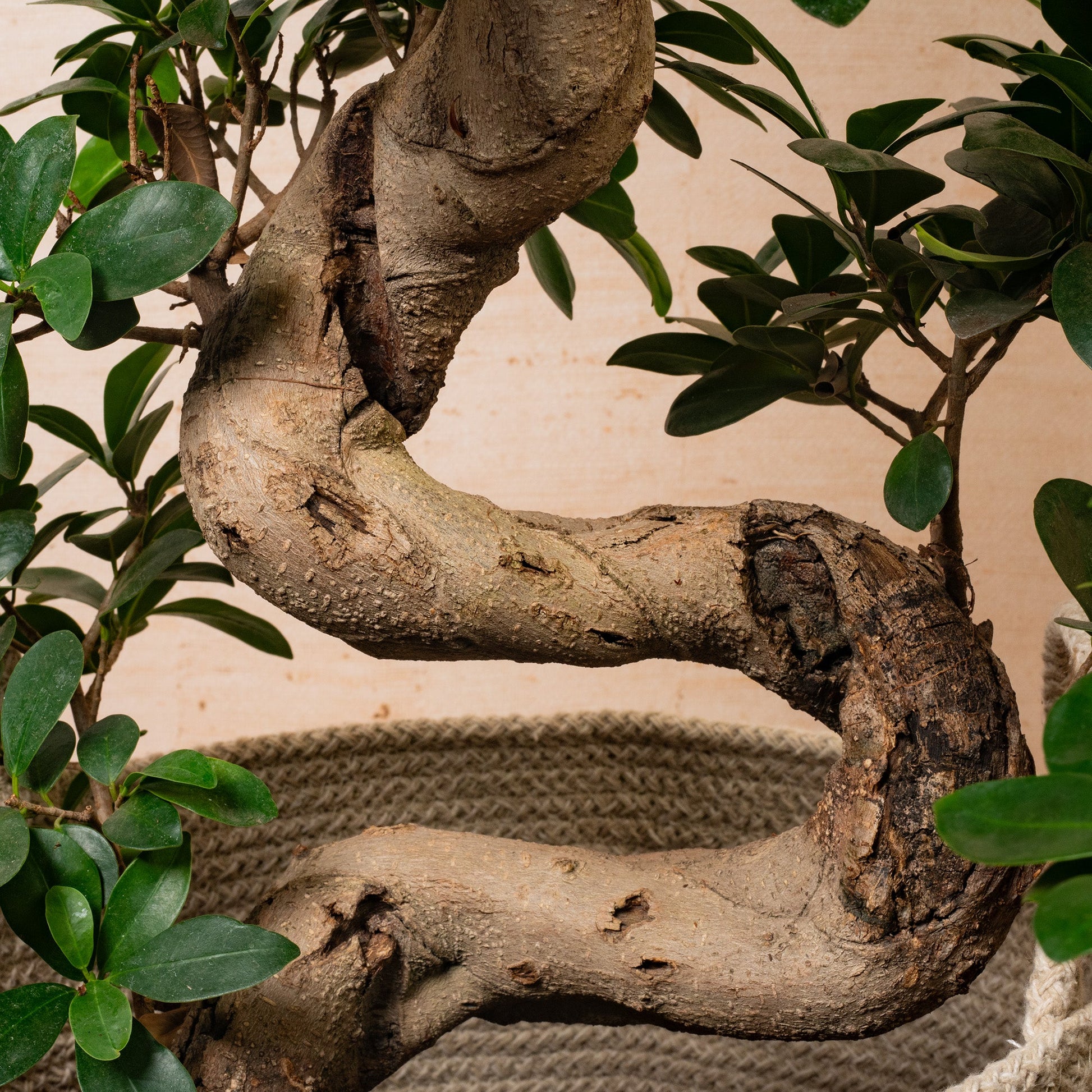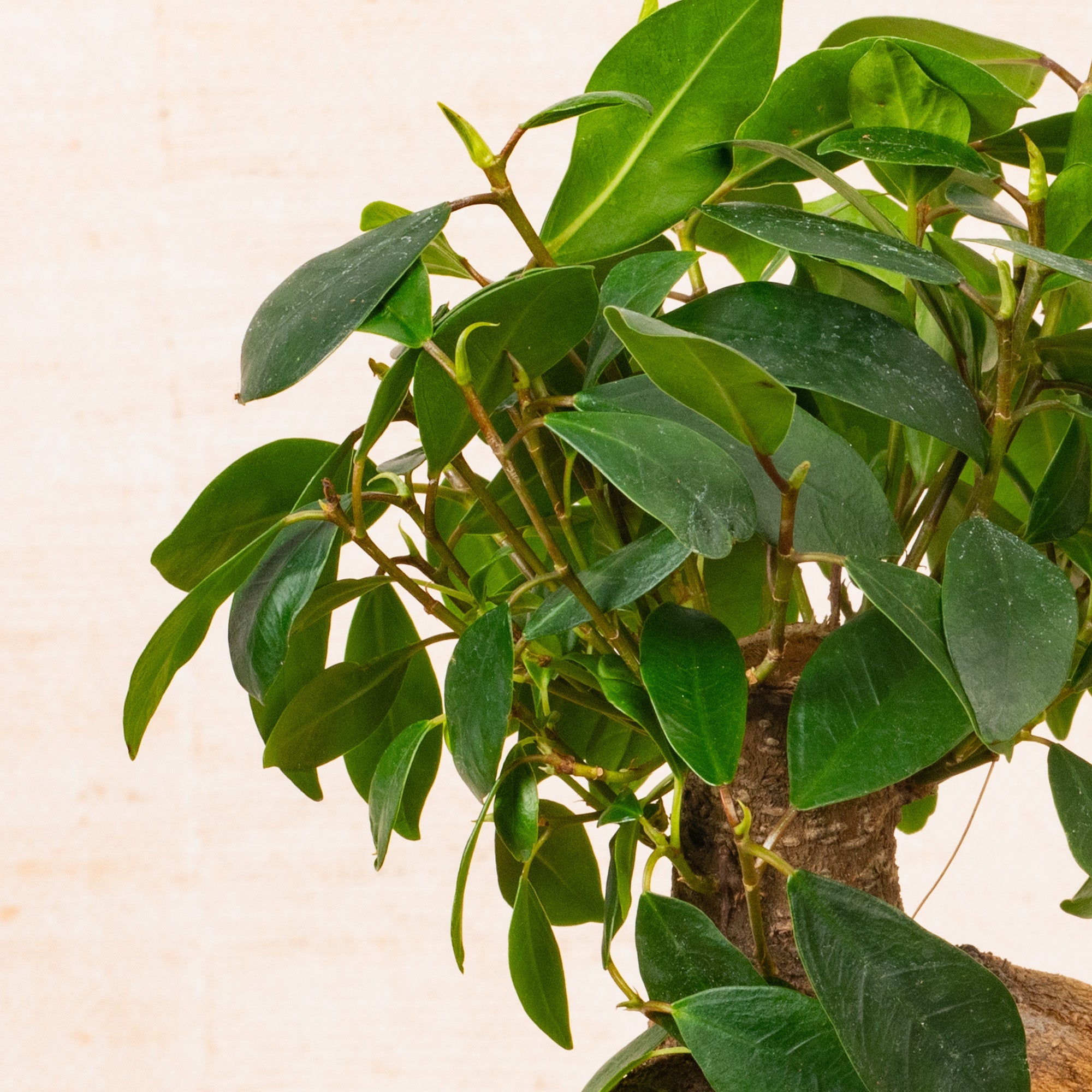 The Ficus ginseng, also known as Ficus retusa, is a species of evergreen bonsai tree native to Southeast Asia. It's prized for its unusual, fleshy trunk and root-like structures that give it a unique, ginseng-like appearance. The Ficus ginseng can grow up to two meters tall but is often kept much smaller through pruning and training. The tree produces oval-shaped, dark green leaves that can grow up to 15cm in length and 10cm in width. The leaves are thick and leathery, and are arranged in a dense, bushy pattern, making it an attractive addition to any indoor space. Despite its unusual appearance, the Ficus ginseng is a relatively low maintenance plant that is ideal for those who want to bring a touch of the tropical into their homes. It thrives in bright, indirect light and warm, humid conditions, and is forgiving of occasional neglect. So, if you're looking for a unique, attractive, and low maintenance plant to add to your home or office, the Ficus ginseng is an excellent choice.