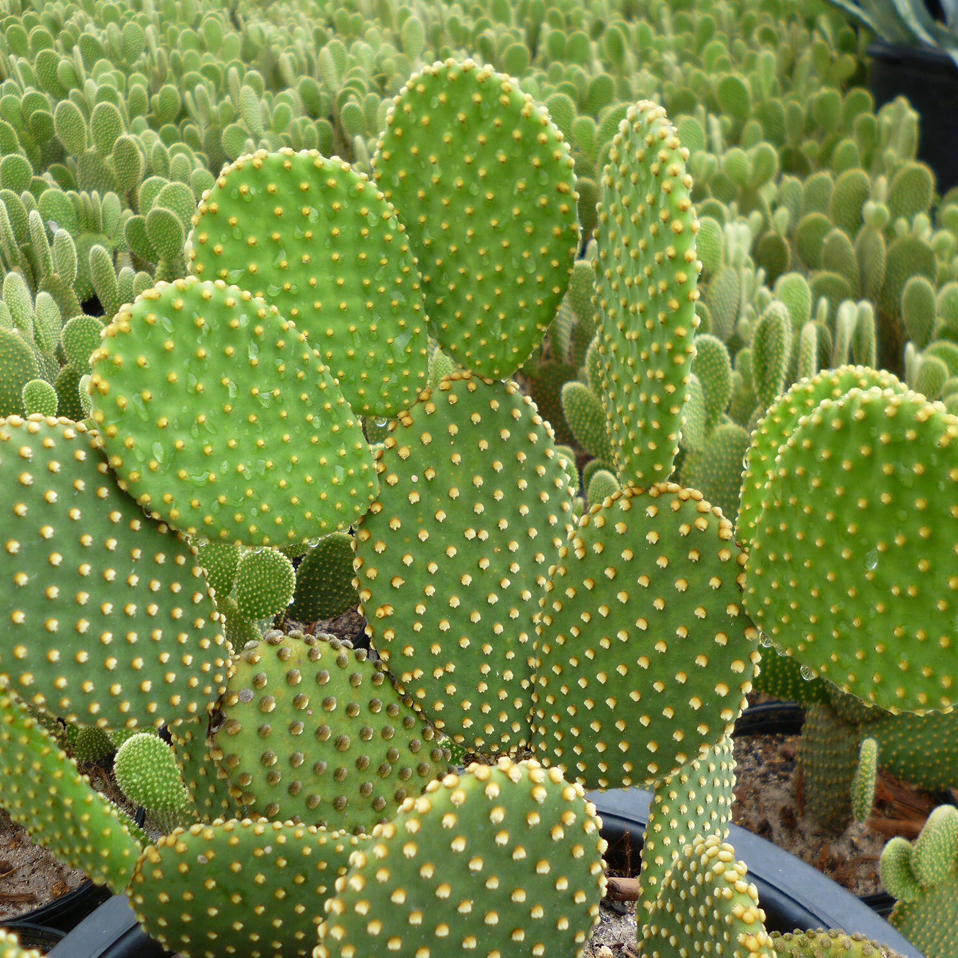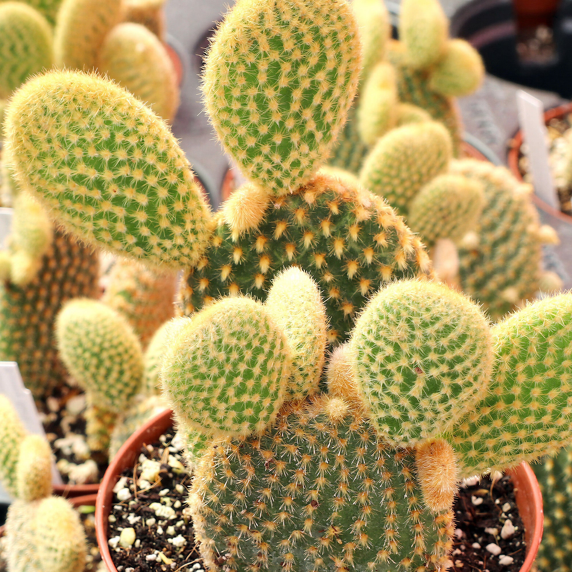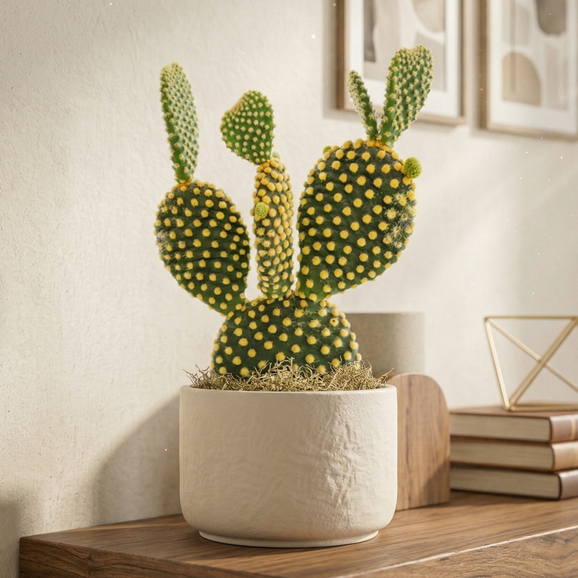 Ideally, position this cactus in a bright, sunny location to ensure the yellow glochids remain vibrant. Use a specialized cactus soil with added pumice or gravel for best results. Water strictly only when the soil is bone dry, as this desert native is extremely drought tolerant and prefers to be underwatered rather than overwatered.