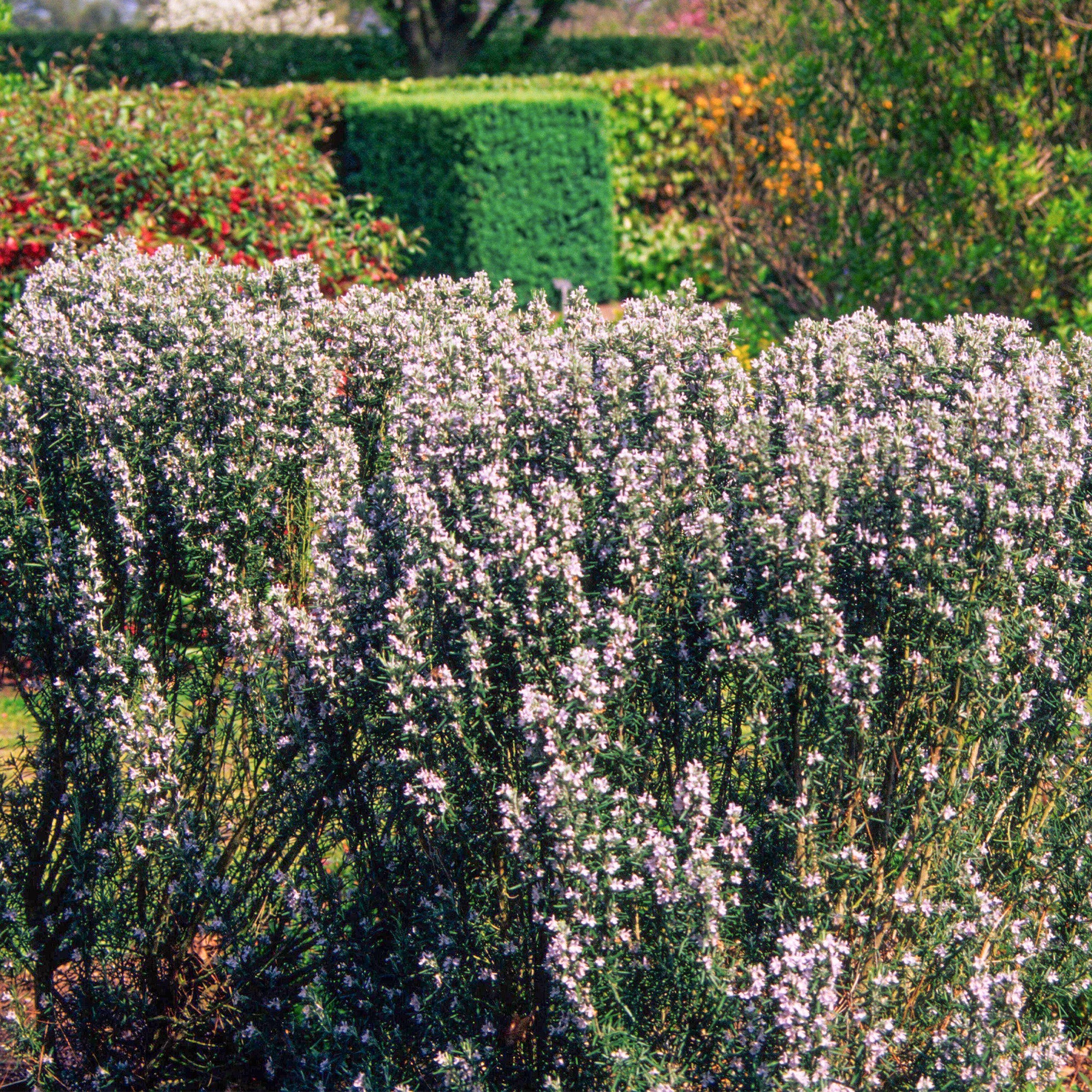 A sun-loving perennial whose scent evokes the Mediterranean, rosemary has needle-like leaves that can be picked all year round. Fresh or dried leaves can be used to flavour meat, soups and many other dishes, while sprigs steeped in olive oil give it a distinctive flavour. Tea made by infusing chopped leaves in boiling water helps digestion.